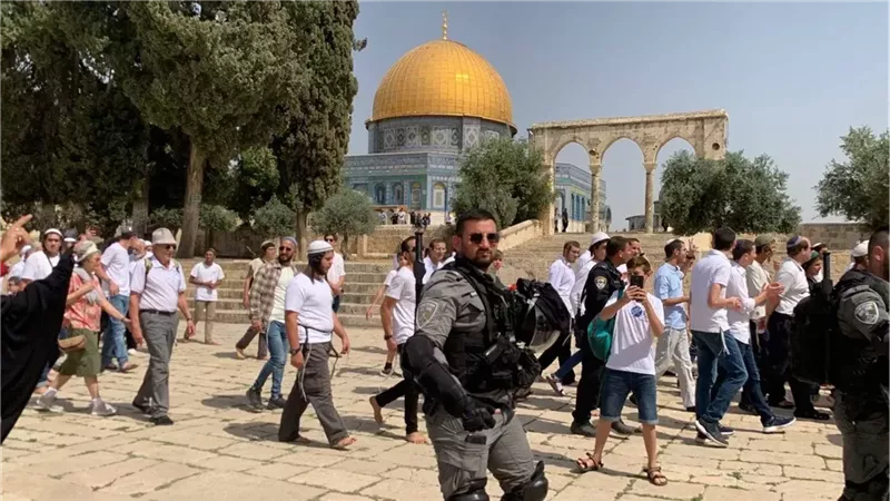 اقتحم مستوطنون إسرائيليون صباح اليوم الأحد باحات المسجد الأقصى المبارك في مدينة القدس المحتلة، تحت حماية قوات شرطة الاحتلال، حيث تجولوا على شكل مجموعات ونفذوا جولات استفزازية وأدوا طقوسًا تلمودية، في مشهد يعكس استمرار الانتهاكات بحق المقدسات الإسلامية.