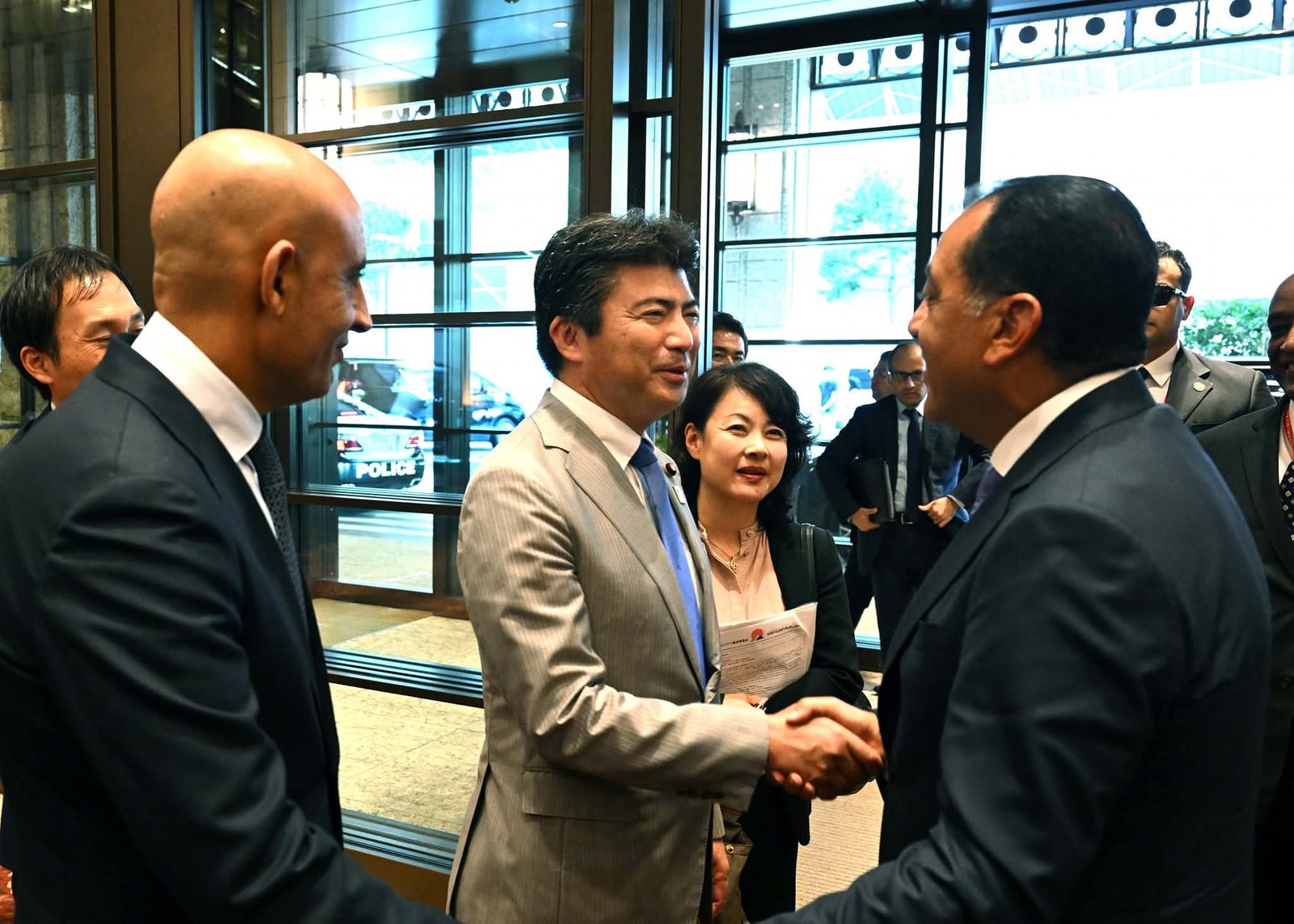 وخلال اللقاء، رحّب وزير الدولة للاقتصاد والتجارة والصناعة الياباني بالدكتور مصطفى مدبولي في أول زيارة له إلى اليابان، منوهًا إلى تطلع بلاده لتوثيق العلاقات مع القاهرة في مختلف المجالات، وأن تكون اليابان شريكًا يُعتمد عليه بالنسبة لمصر.