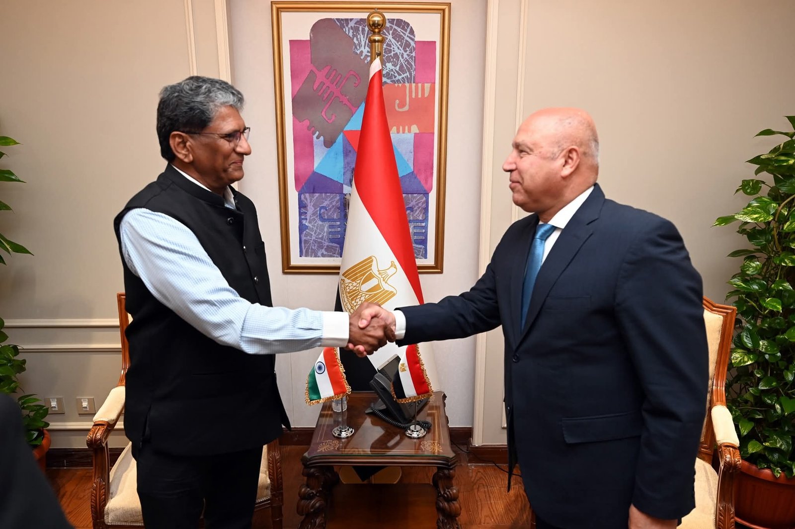وأعرب السفير عن تطلع الحكومة الهندية لاستقبال السيد نائب رئيس مجلس الوزراء للتنمية الصناعية وزير الصناعة والنقل في الهند للالتقاء بالمسؤولين المعنيين وبحث سبل تطوير وتعميق العلاقات الثنائية لاستغلال طاقات البلدين فضلاً عن الالتقاء برؤساء وكبريات الشركات الهندية ومحافل رجال الأعمال وعرض الفرص الصناعية والاستثمارية في مصر.