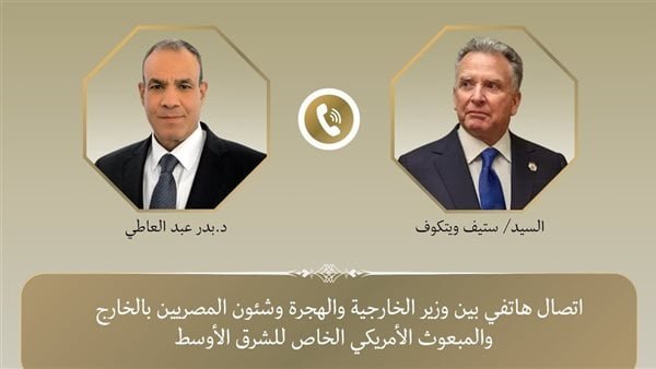 أجرى وزير الخارجية الدكتور بدر عبد العاطي اليوم الأربعاء 20 أغسطس اتصالًا هاتفيا مع ستيف ويتكوف المبعوث الأمريكي الخاص للشرق الأوسط، وذلك في إطار الاتصالات الدورية بينهما لتناول التطورات الإقليمية وفي مقدمتها الأوضاع الكارثية في قطاع غزة وكذلك تطورات الملف النووي الإيراني.