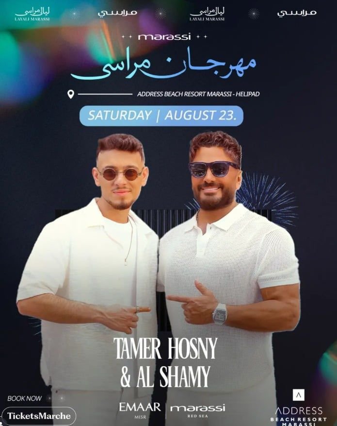 يستعد النجم تامر حسني، والنجم الشامي، لإحياء حفل جماهيري ضخم استثنائي الليلة، بمهرجان مراسي “ليالي مراسي”، برعاية مراسي البحر الأحمر.