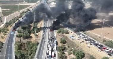 أغلق المتظاهرون الإسرائيليون، الطرق السريعة فى الأراضى المحتلة والطريق السريع 1 والطريق السريع 6 بتل أبيب، فى جميع الاتجاهات، احتجاجا على استمرار الحرب ضد قطاع غزة، وللمطالبة بالموافقة على صفقة تبادل مع الفصائل الفلسطينية، من أجل الإفراج عن المحتجزين بالقطاع منذ أكتوبر 2023.