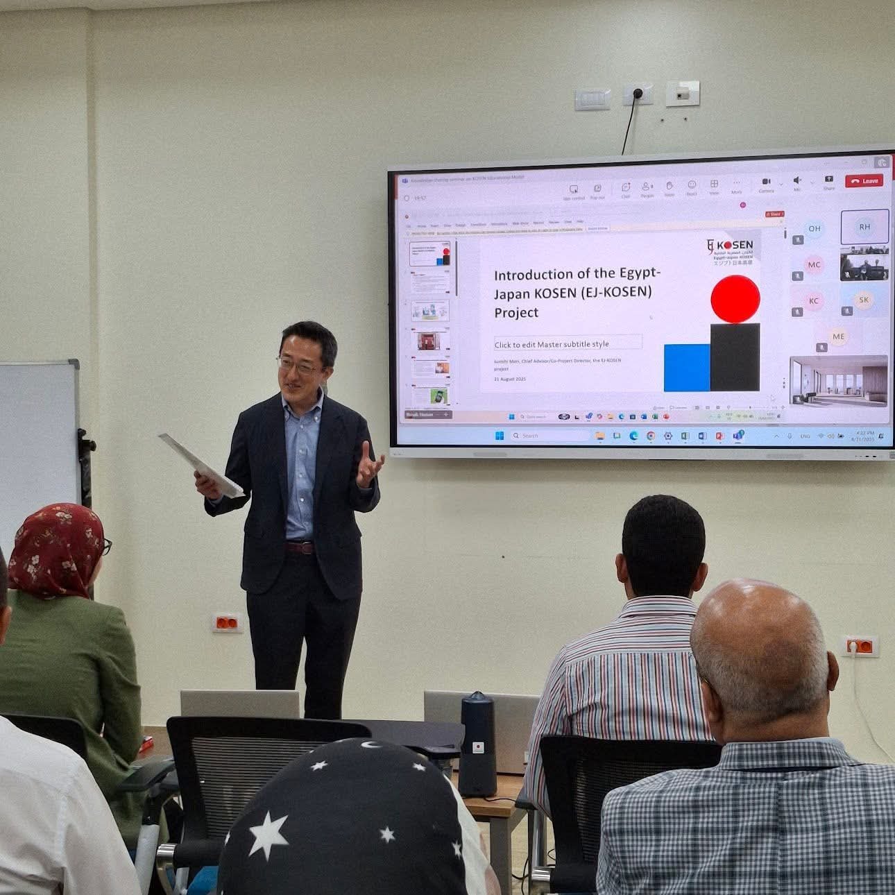 وفي ذات السياق، أكد د. جونتشي موري، الخبير الياباني والمدير المشارك في إدارة مشروع معاهد الكوزن المصرية اليابانية، أن التدريب الجاري يطبق معايير الجودة اليابانية (KIS) المعتمدة من المعهد الوطني للتدريب باليابان (NIT)، وبمشاركة نخبة من الخبراء اليابانيين الذين يقودون تنفيذ هذا النموذج في موطنه الأصلي.