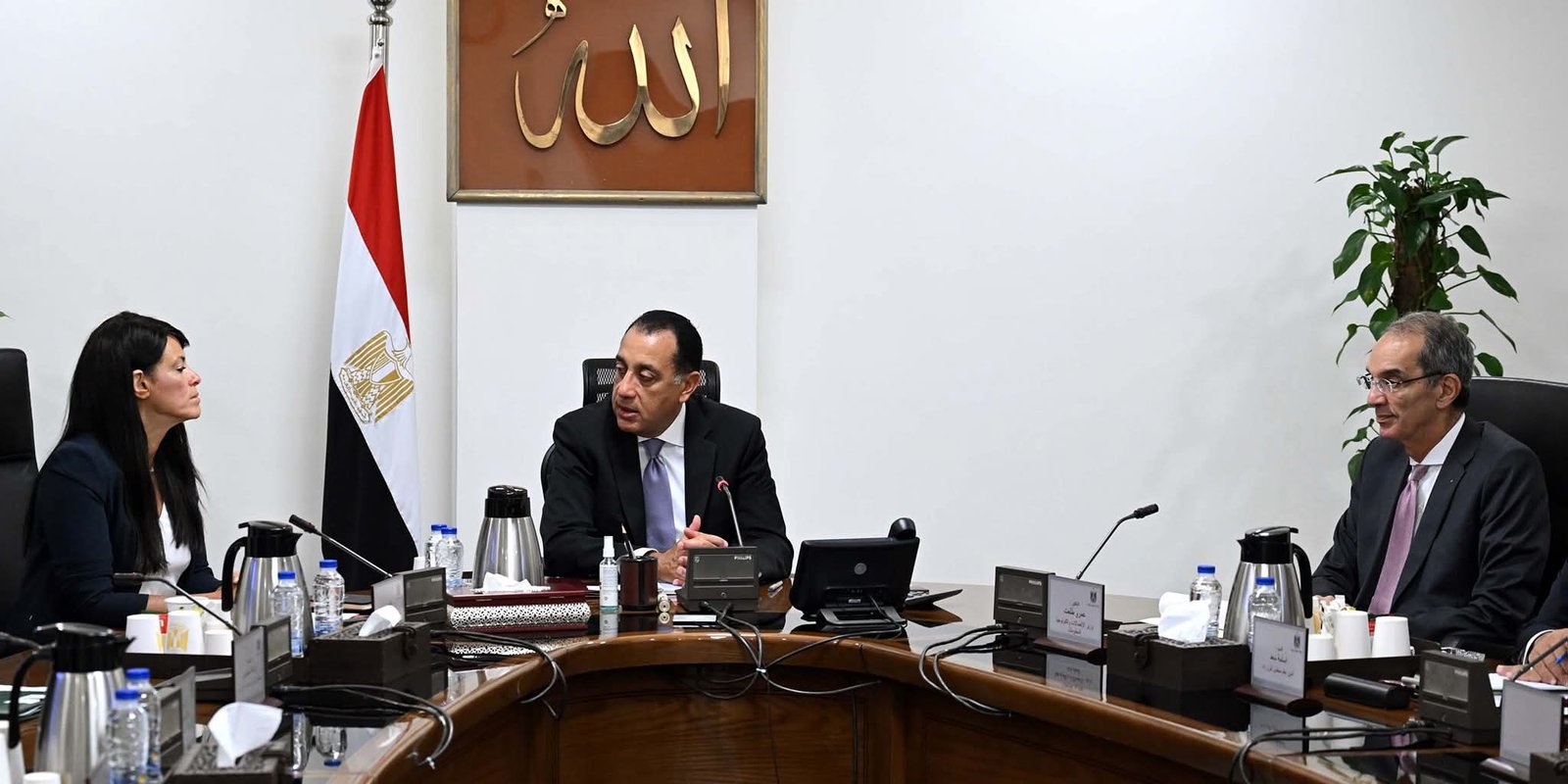 التقى الدكتور مصطفى مدبولي، رئيس مجلس الوزراء، اليوم، الدكتورة رانيا المشاط وزيرة التخطيط والتنمية الاقتصادية والتعاون الدولي، والدكتور عمرو طلعت، وزير الاتصالات وتكنولوجيا المعلومات، بمقر الحكومة بمدينة العلمين الجديدة؛ لمتابعة عدد من ملفات العمل المشتركة بين الوزارتين، وذلك بحضور كل من المهندس محمد شمروخ، الرئيس التنفيذي للجهاز القومي لتنظيم الاتصالات، والمهندس محمد نصر الدين، العضو المنتدب والرئيس التنفيذي للشركة المصرية للاتصالات، وشاركت المهندسة نهاد مرسي، مساعد وزيرة التخطيط والتنمية الاقتصادية والتعاون الدولي لشئون البنية الأساسية، في الاجتماع، عبر تقنية الفيديو كونفرانس.