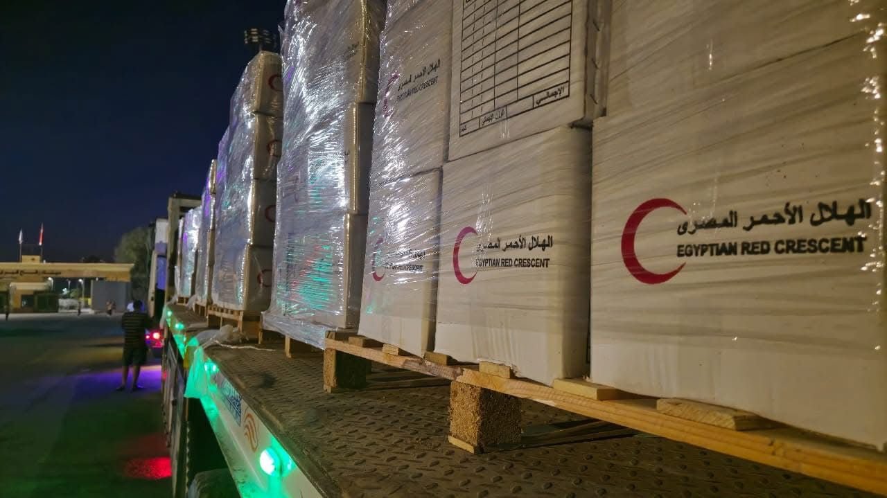 جدير بالذكر أن الهلال الأحمر المصري يتواجد كآلية وطنية لتنسيق وتفويج المساعدات إلى غزة، على الحدود منذ بدء الأزمة حيث لم يتم غلق معبر رفح من الجانب المصري نهائيًا، وواصل تأهبه فى كافة المراكز اللوجستية وجهوده المتواصلة لدخول المساعدات التي بلغت أكثر من نصف مليون طن من المساعدات الإنسانية و الإغاثة، وذلك بجهود 35 ألف متطوع بالجمعية.