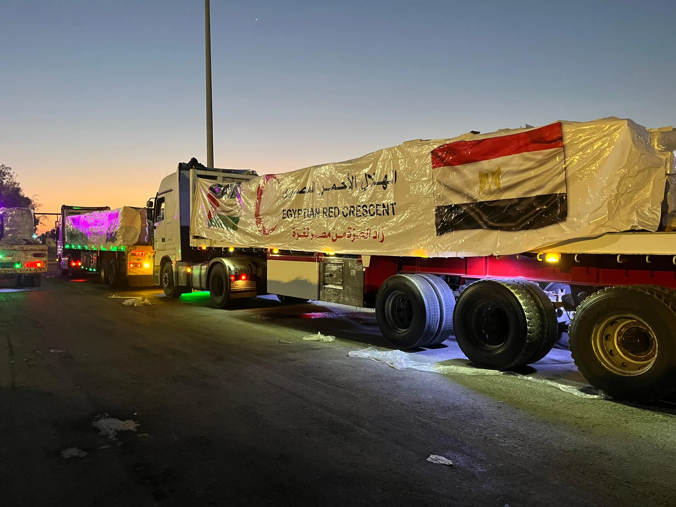 وجدير بالذكر ان الهلال الأحمر المصري يتواجد كآلية وطنية لتنسيق وتفويج المساعدات إلى غزة، على الحدود منذ بدء الأزمة حيث لم يتم غلق معبر رفح من الجانب المصري نهائيًا، وواصل تأهبه فى كافة المراكز اللوجستية وجهوده المتواصلة لدخول المساعدات التي بلغت أكثر من نصف مليون طن من المساعدات الإنسانية و الإغاثة، وذلك بجهود 35 ألف متطوع بالجمعية.