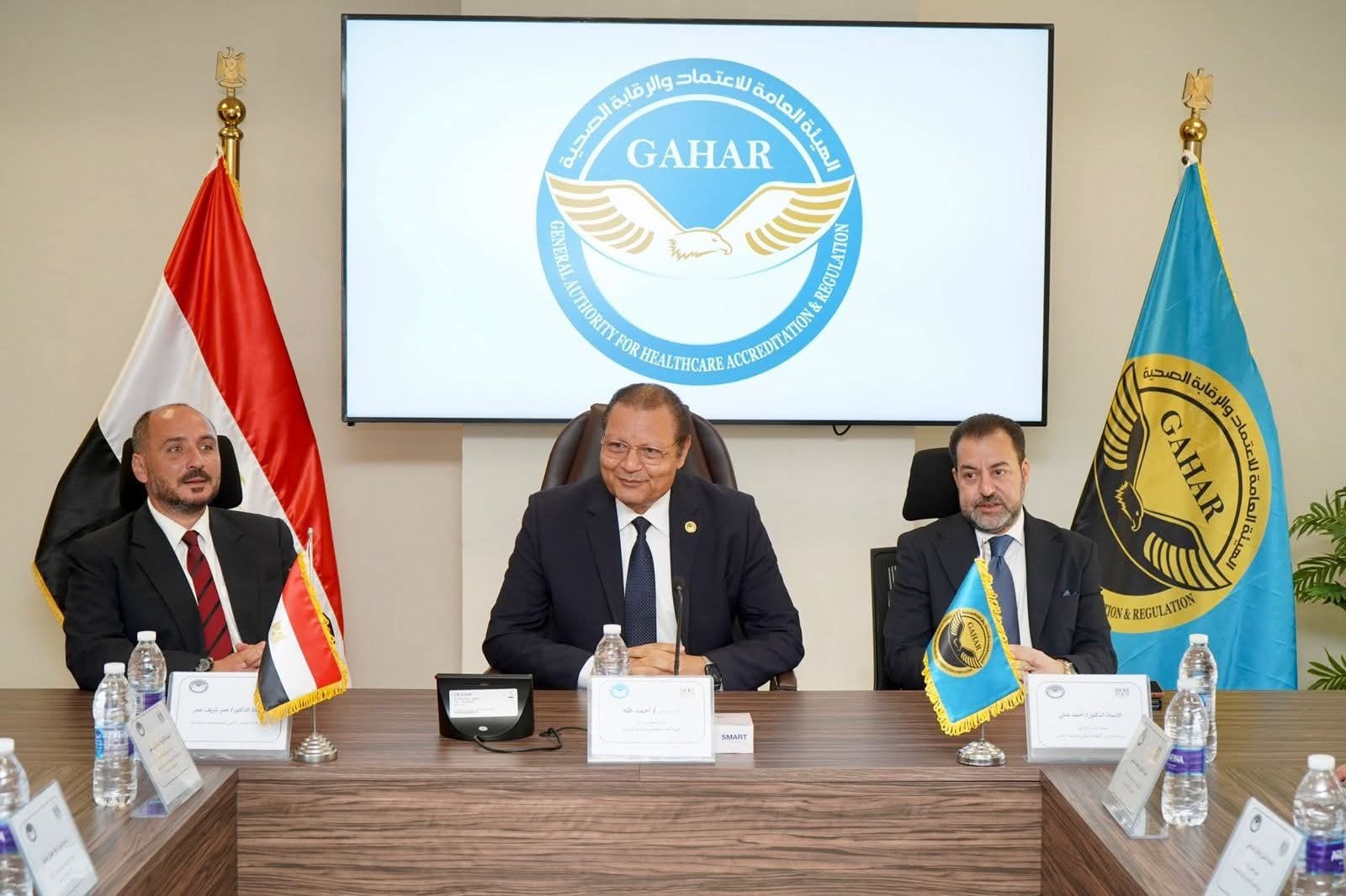 في إطار توجيهات الرئيس عبد الفتاح السيسي بتعزيز دور المستشفيات الجامعية داخل المنظومة الصحية والاستعداد للمرحلة الثانية من مشروع التأمين الصحي الشامل، استقبل الدكتور أحمد طه، رئيس الهيئة العامة للاعتماد والرقابة الصحية، بمقر الهيئة بالعاصمة الإدارية الجديدة، الدكتور عمر شريف عمر، أمين عام المجلس الأعلى للمستشفيات الجامعية، والدكتور أحمد عناني، عميد كلية طب الزقازيق ومستشار وزير التعليم العالي والبحث العلمي للسياسات الصحية، وذلك لبحث سبل التعاون المؤسسي وتطبيق معايير الجودة والاعتماد بالمستشفيات الجامعية.
