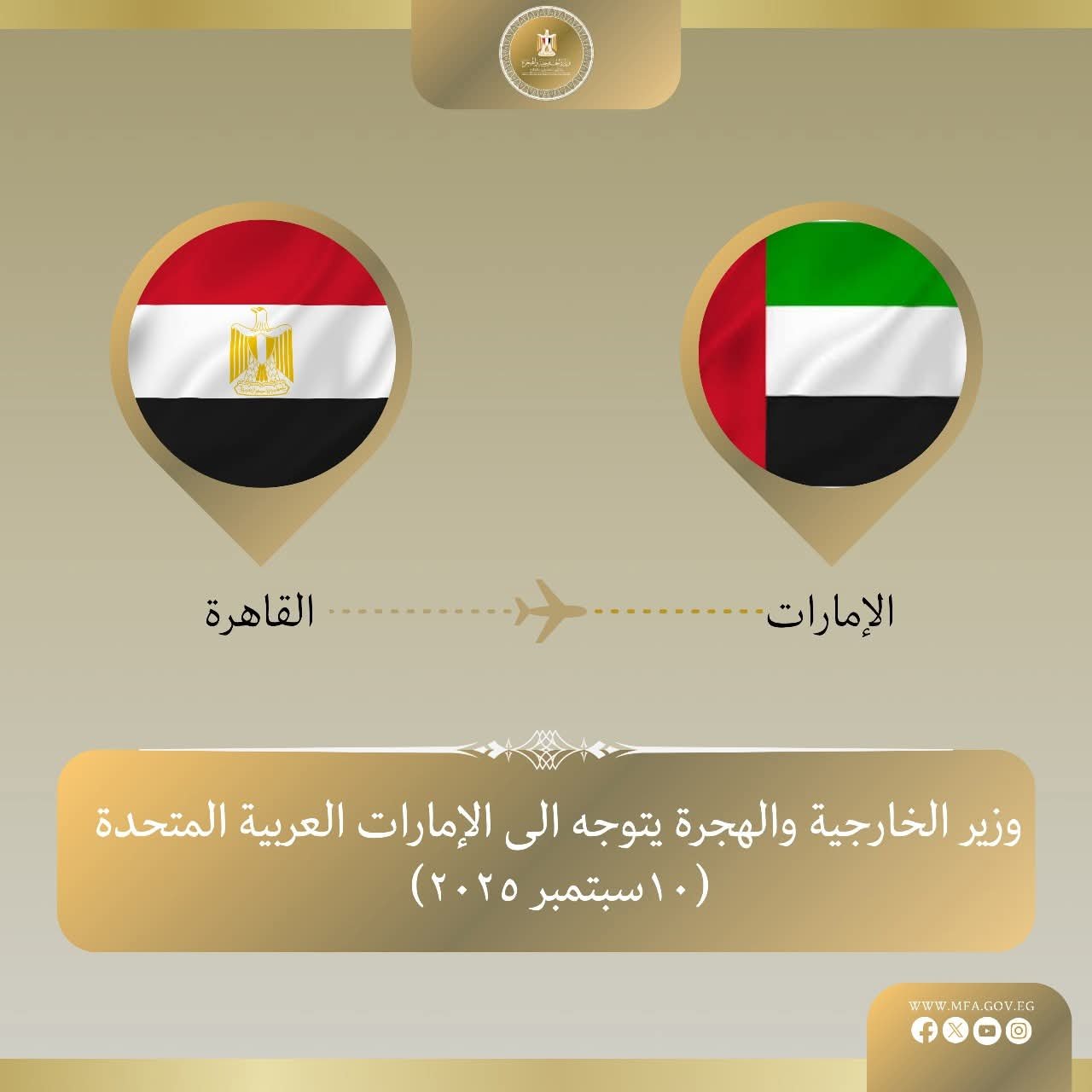 وزير الخارجية يتوجه إلى أبوظبي لبحث تعزيز التعاون المصري الإماراتي