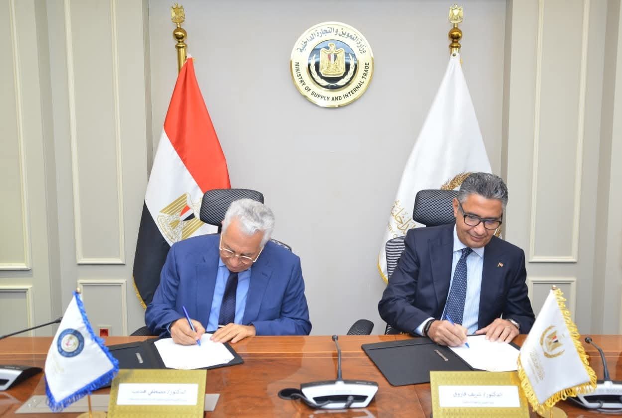 قام اليوم الدكتور شريف فاروق وزير التموين والتجارة الداخلية، بتوقيع بروتوكول تعاون مع الدكتور مصطفى هديب رئيس الأكاديمية العربية للعلوم الإدارية والمالية والمصرفية، وذلك بمقر الوزارة بالعاصمة الادارية، بهدف تعزيز التعاون في مجالات التدريب والتأهيل العلمي والمهني للعاملين بالوزارة.