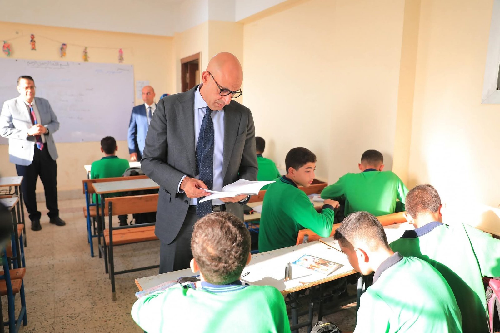 وخلال الجولة، تفقد الوزير عددًا من الفصول الدراسية، واطمأن على نسب الكثافات الطلابية وحضور الطالبات، كما تابع مستوى التحصيل الدراسي لطالبات الصف الثاني الإعدادي، حيث دار حوار مع الطالبات حول المواد الدراسية وأهمية مادة التربية الدينية في غرس القيم والأخلاق.