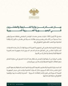 استنكرت وزارة الخارجية السورية، الهتافات المسيئة لمصر وأكدت أنها لا تعكس مشاعر الشعب السوري تجاه مصر قيادةً وشعباً.