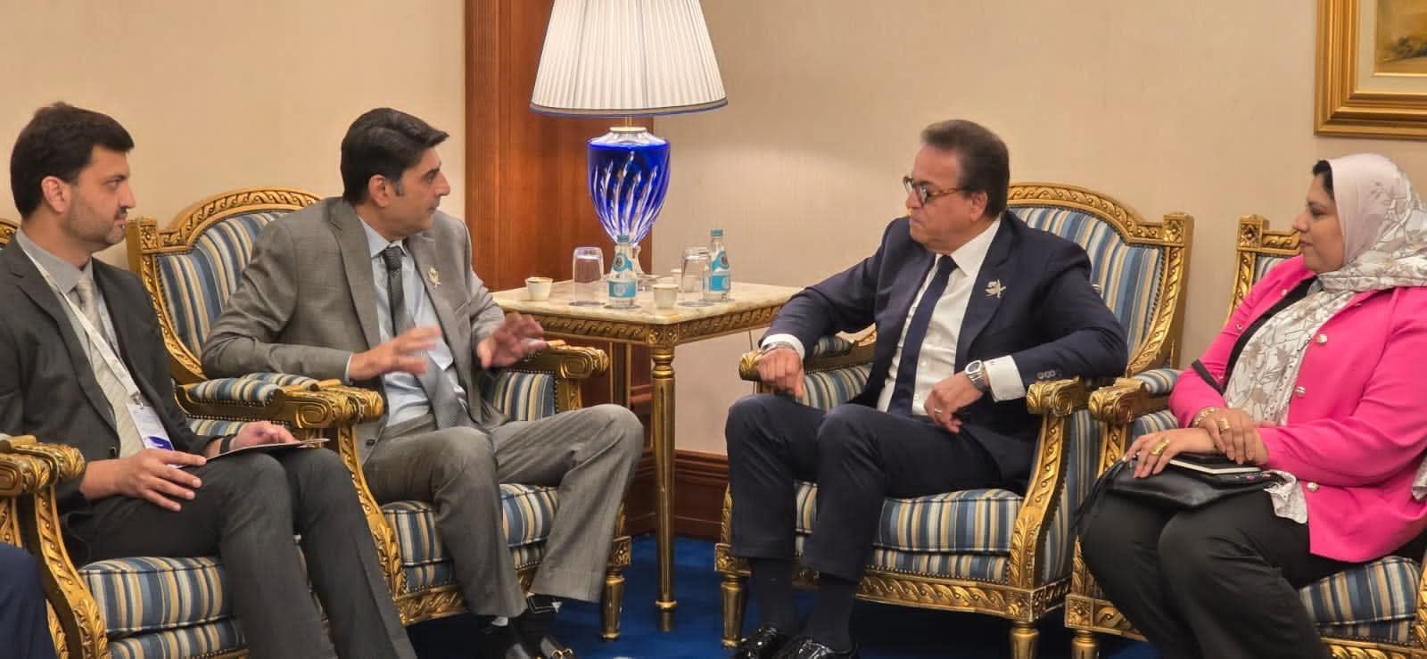 عقد الدكتور خالد عبدالغفار، نائب رئيس مجلس الوزراء ووزير الصحة والسكان، لقاءً مع سيد مصطفى كمال، وزير الصحة الباكستاني، وذلك على هامش أعمال القمة الوزارية العالمية السادسة للصحة النفسية، التي تستضيفها العاصمة القطرية الدوحة.