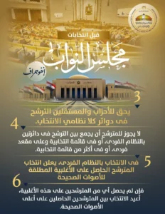 وأوضحت الوزارة أن المواد التوعوية تُقدَّم في صيغة إنفوجراف بهدف تسهيل وصول المعلومات إلى المواطنين وتعريفهم بكل ما يتعلق بالعملية الانتخابية.