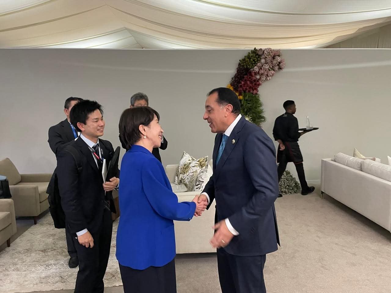 على هامش مشاركته نيابة عن الرئيس عبد الفتاح السيسي، رئيس الجمهورية، في قمة مجموعة العشرين (G20) لعام 2025 بمدينة جوهانسبرج في جنوب أفريقيا، التقى الدكتور مصطفى مدبولي، رئيس مجلس الوزراء، صباح اليوم،  مع “ساناي تاكايتشي”، رئيسة وزراء اليابان.