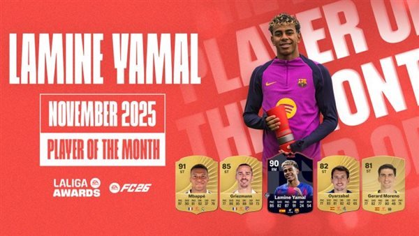 حصل لامين يامال نجم فريق برشلونة، على جائزة أفضل لاعب في مسابقة الدوري الإسباني لموسم 2025 – 2026، خلال شهر نوفمبر.