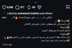 “دلوقتى بيب بيب على جميع المنصات نصيحة، اللي ما بيحبناش ما يسمعهاش علشان ما يروحش الانعاش”.