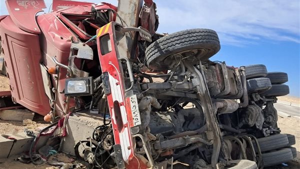 إصابة شخصين في انقلاب سيارة نقل على طريق العين السخنة بالسويس