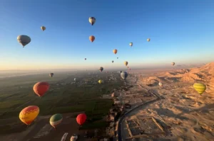 وتُعد رحلات البالون الطائر من أبرز الأنشطة السياحية التي يقبل عليها زوار الأقصر يوميًا، إذ يحرص السائحون على حجز الرحلات التي تبدأ فجراً من مطار البالون الطائر، حيث يتم الانتقال عبر المراكب النيلية إلى البر الغربي للاستمتاع بتجربة التحليق الفريدة. وقبل الإقلاع، تحصل الشركات على إشارة البدء من الشركة المصرية للمطارات، ويتم ملء البالونات بالهواء البارد ثم الساخن، مع إجراء فحص شامل للتأكد من تطبيق كافة إجراءات السلامة المهنية والشخصية.