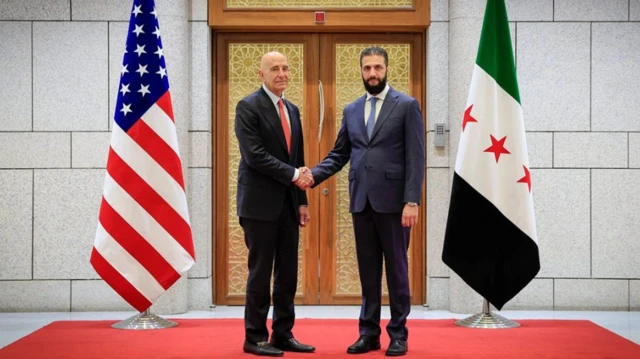 قال المبعوث الأمريكي توم براك إنه التقى، في دمشق، بالرئيس السوري أحمد الشرع ووزير الخارجية أسعد الشيباني، إلى جانب عدد من أعضاء فريقهما، نيابة عن الرئيس الأمريكي دونالد ترامب ووزير الخارجية ماركو روبيو، لبحث التطورات الأخيرة في مدينة حلب والمسار الأوسع للمرحلة الانتقالية التي تمر بها سوريا.