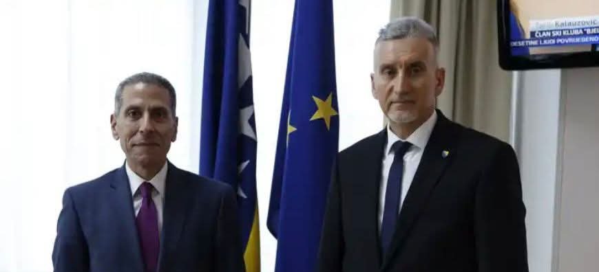 إلتقى السفير وليد حجاج، سفير مصر في سراييفو، السيد “كمال أديموفيتش” رئيس مجلس الشعب في برلمان البوسنة والهرسك، وذلك في سياق علاقات التعاون الممتدة التي تربط بين مصر والبوسنة والهرسك، والحرص المشترك على تعزيز أوجه التعاون المتبادل بين البلدين على الصعيد البرلماني.