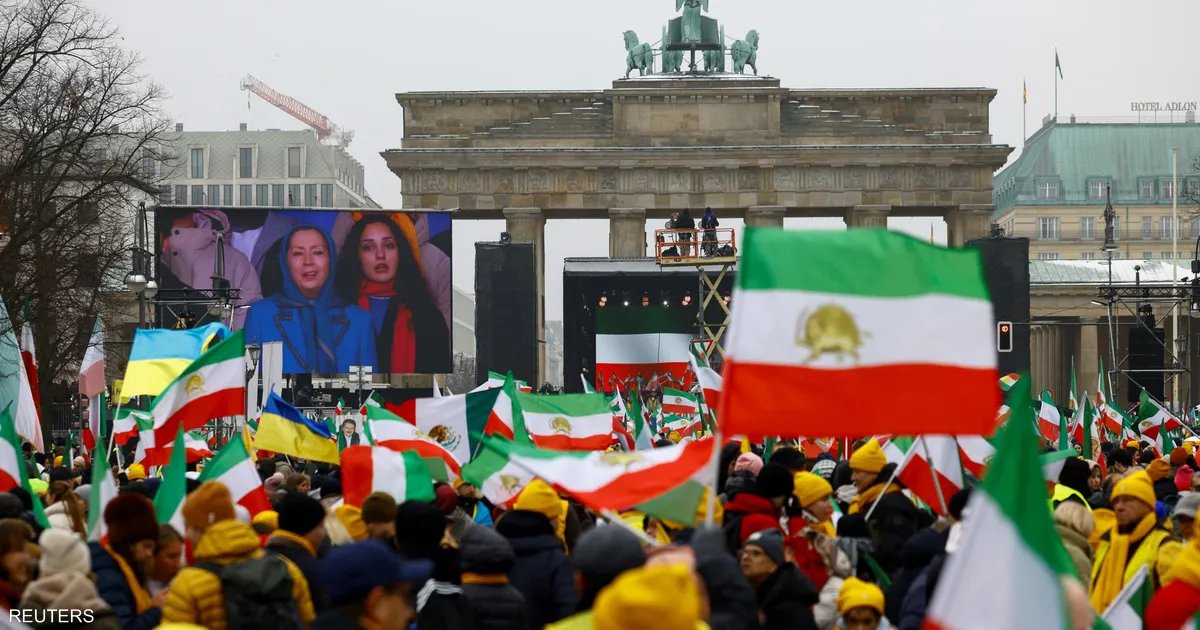 وذكرت الشرطة الألمانية أن نحو 10 آلاف شخص تجمعوا أمام بوابة براندنبورغ وسط برلين، بدعوة من “المجلس الوطني للمقاومة الإيرانية” المرتبط بمنظمة “مجاهدي خلق” المعارضة، والتي تصنّفها السلطات الإيرانية منظمة “إرهابية”.