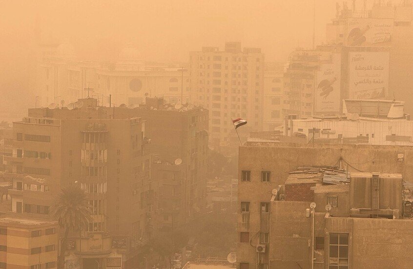 نشرت هيئة الأرصاد الجوية المصرية، بيانًا جديدًا حول العاصفة الترابية التي تضرب البلاد اليوم الجمعة٬ بأن أخر صور الأقمار الصناعية تشير إلى أن الرمال المثارة على القطاع الغربي من البلاد الوجه البحري والقاهرة الكبرى ومدن القناة والسواحل الشمالية.