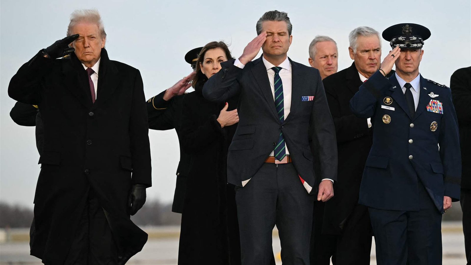 أشرف الرئيس الأمريكي دونالد ترامب، السبت، على مراسم عسكرية قصيرة في مدرج قاعدة دوفر الجوية بولاية ديلاوير، لإعادة جثامين ستة جنود أمريكيين لقوا مصرعهم خلال العمليات العسكرية في الحرب الدائرة ضد إيران.