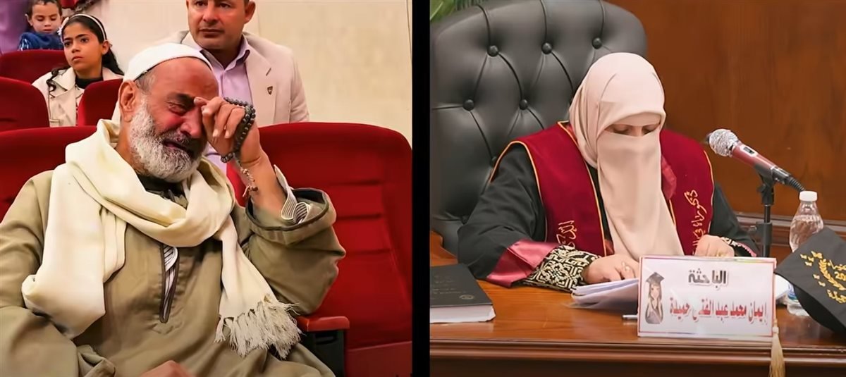 حصلت الباحثة إيمان محمد حميدة على درجة الدكتوراه في الشريعة الإسلامية بتقدير امتياز مع مرتبة الشرف الأولى من كلية الدراسات الإسلامية والعربية بجامعة الأزهر وسط أجواء احتفالية مهيبة، وشهدت المناقشة مشهداً إنسانياً مؤثراً حيث انهار والد الباحثة بالبكاء تأثراً بكلمات ابنته التي وصفتها له بالسند والقدوة والملهم الأول في مشوارها العلمي الطويل.